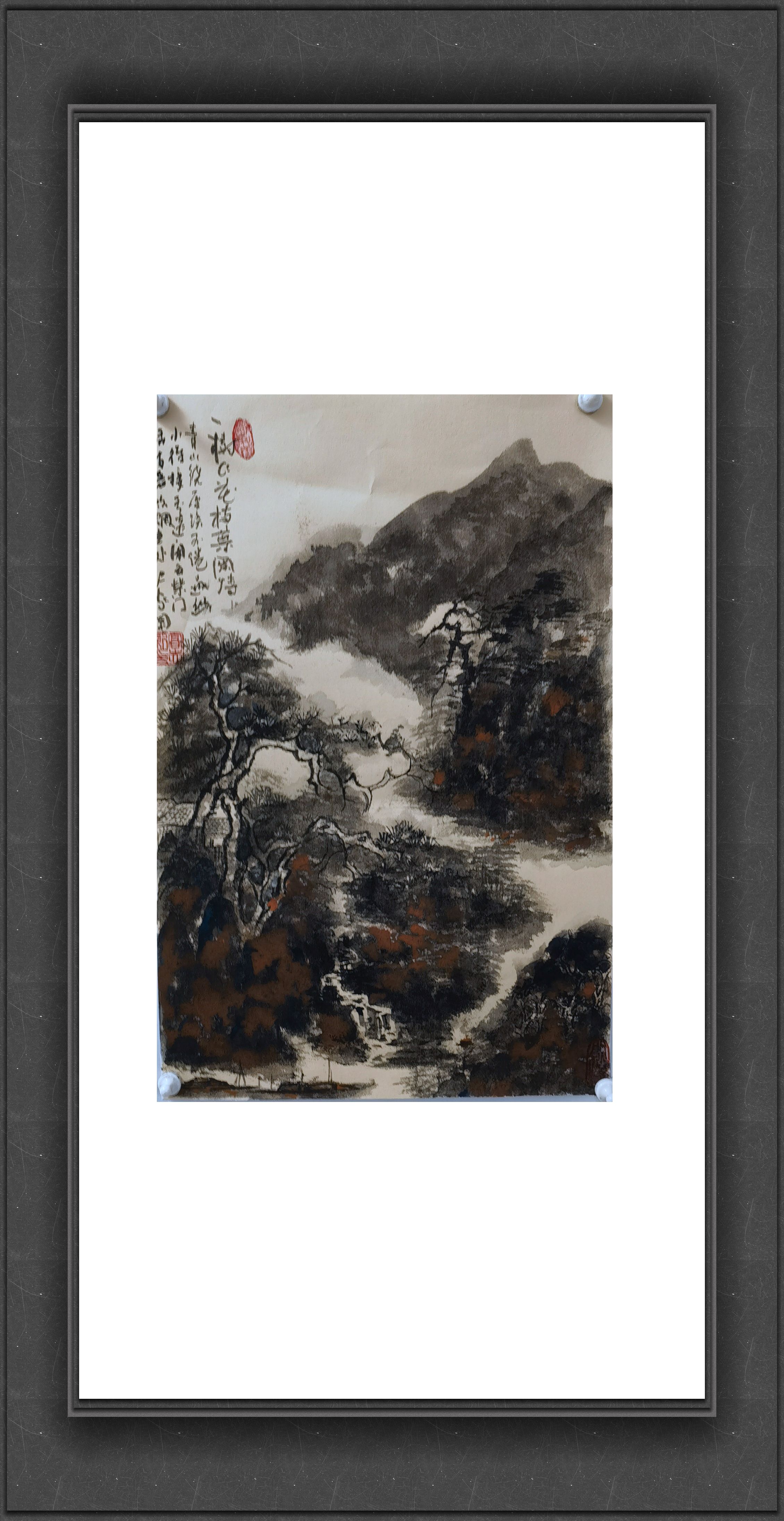 其绘画艺术学术作品,深刻烘托“多重层阶”理念。以“目阶”观、察、识、量处收获山川秀美孕育融合、润泽万物生生不息力量,纵横连绵,自然景象处读出“取舍消长”理念。以“行阶”处拾得原、野、林、峰造化自然意义,深度丰厚作品灵魂主题,化实景为物相,创形象为意象;于传统理思维与行足探求间丰厚所愿、所向“持驰不缀”向往追求。以“色阶”浓、淡、厚、重处汇聚恬静、博大、深邃意境,于地域、气候、四季间呈现出“流动往复”“固守坚韧”理念。用“思阶”映照、感知、固化艺术追求方向,勤于古画感知艺术之美,摹临技法内求取思想之桥,自然世界中丰富认知实践;画风画作反映哲学命题,宏观处展现自然、社会与自我的辩证关系,具象中深刻领悟对生命、生存、生活的抵岸思考,以形象之外,景象之法,意象之根塑造中国画笔墨之境,气象之妙,精神之魂。