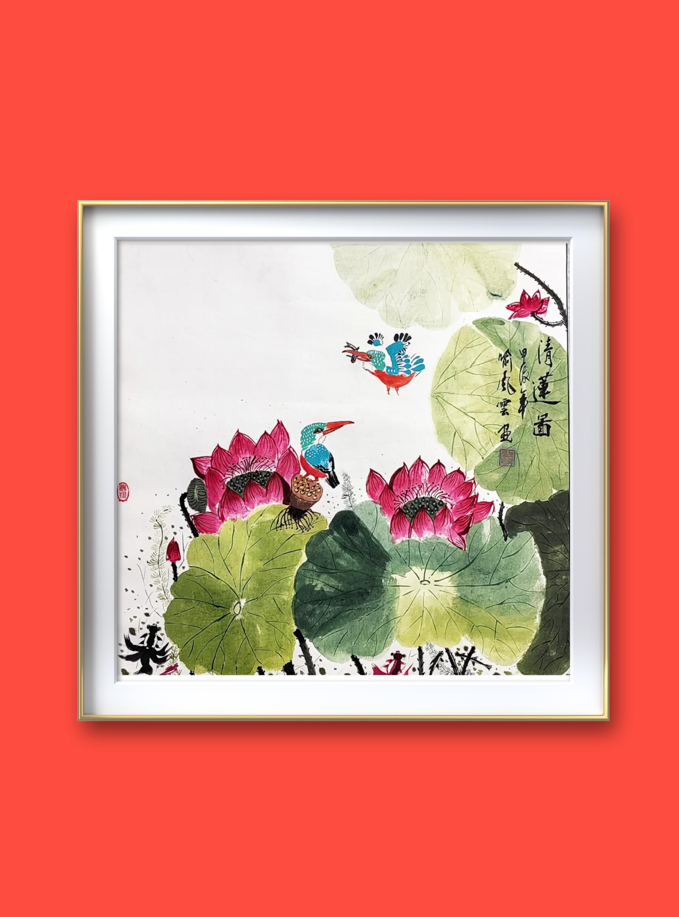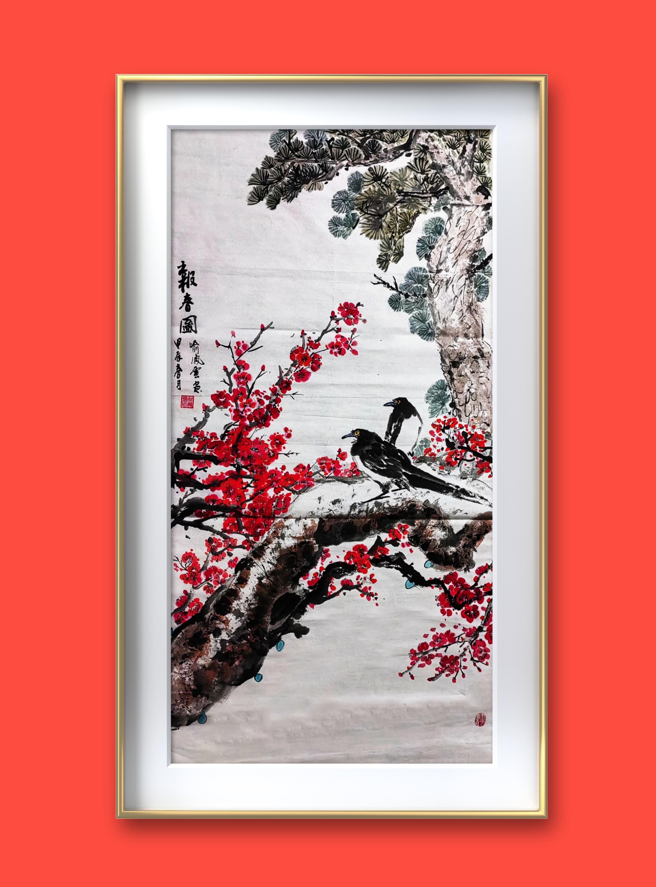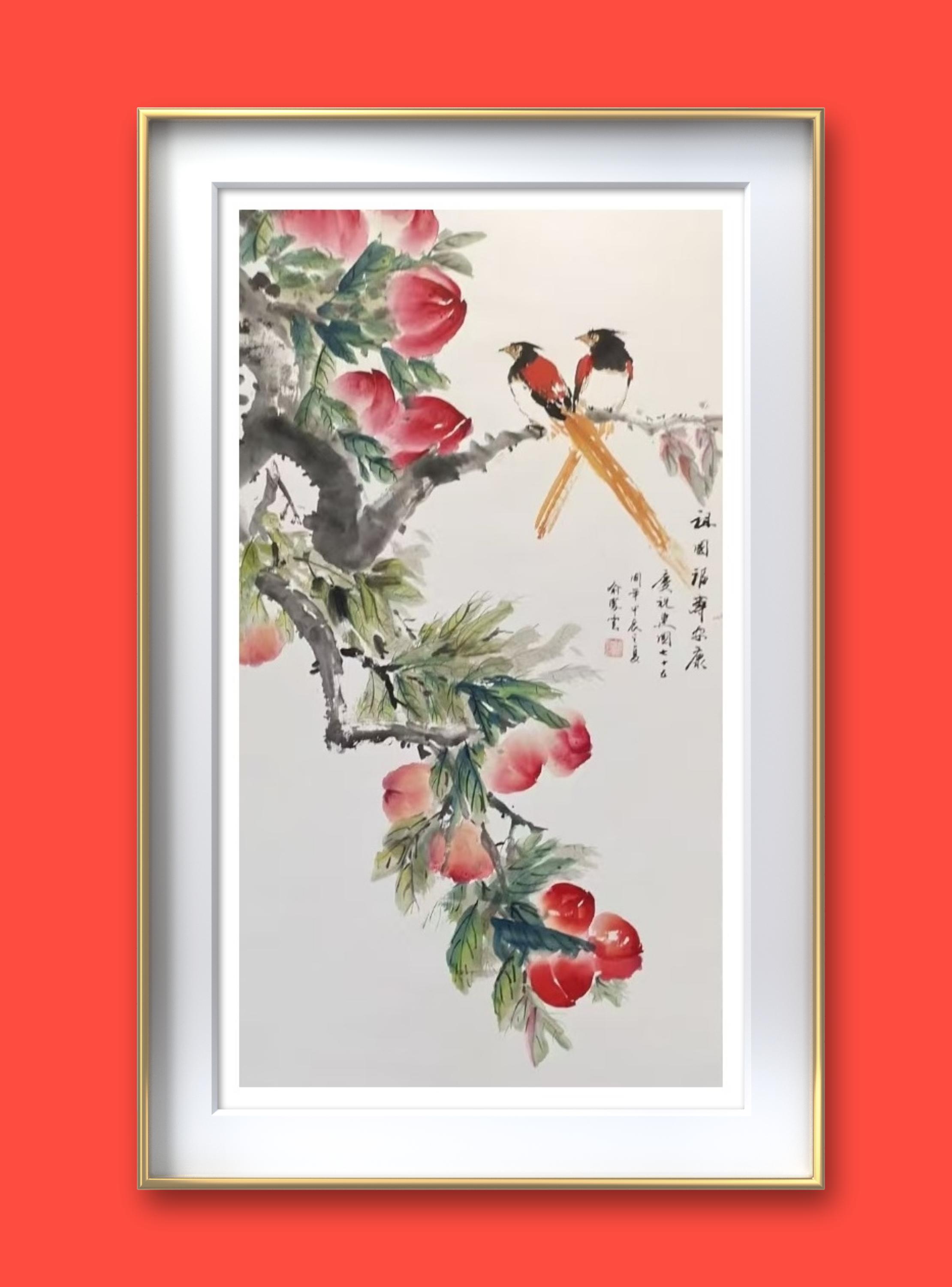 2.《鸿运兴 盛世安》是赠送属鸡的大姑姐一家的礼物。每只鸡代表家庭中的一个人,三代七口人。口叼五花肉的母鸡是大姐,其背上的鸡宝宝是大姐三岁的孙子。只露出半个身子的小鸡是头戴红花小鸡的男朋友……作品名称嵌入大姐姐夫及儿孙四人的名字。祝姐姐一家鸿运高照,兴旺发达,尽享盛世和平安宁。祝祖国繁荣昌盛,平安吉祥。更为有意思的是:这幅画完成的第二天,就传来喜信,各自寻觅多年未果的他们即将步入婚姻的殿堂......大家说我的画给这个家族带来了鸿运。该画为大家讲述中国亿万普通家庭幸福和美的故事,也为我带来高光时刻。