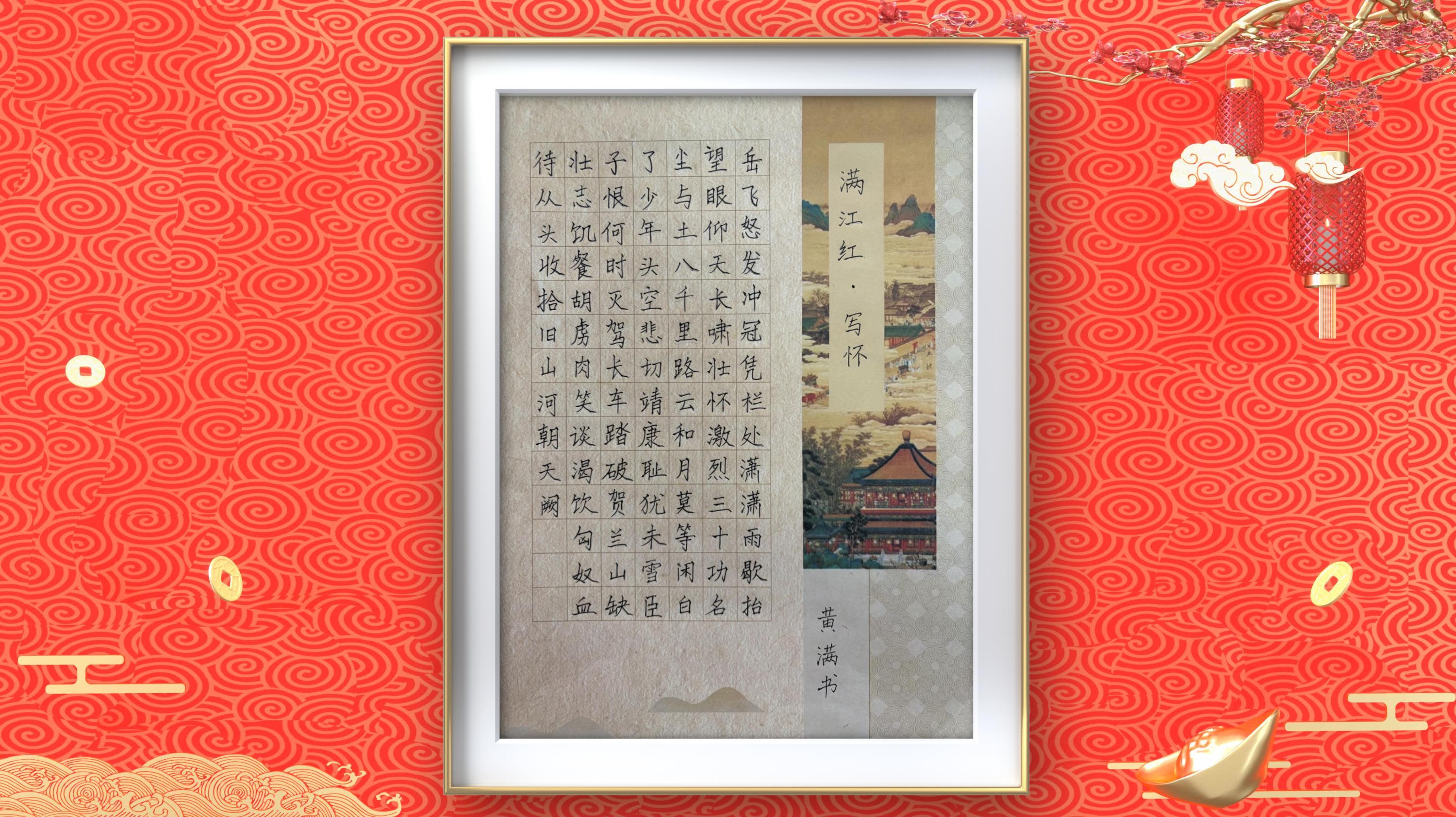 黄满,女,汉族,大专学历,于2005年8月出生于山东省青岛市胶州市。现为山东省硬笔书法家协会会员,书法家职称。北京当代翰墨文化艺术院院士。现任山东省硬笔书法家协会青岛市教学管理委员会副主任,北京当代翰墨文化艺术院瀚林分院副院长,青少年人才库工委副秘书长职务。自幼酷爱书法艺术,多次参加全国及省级书画大赛並获奖。2020年参加山东省书画大赛获少年组一等奖。2023年参加第39届全国中小学生书画大赛获金奖,2024年参加中国书画大赛暨国际名家邀请赛获青年组二等奖,作品入选《中国书画珍品集》。2026年1月,被选入北京当代翰墨文化艺术院人才库,作品在新时代艺术名家网展出。