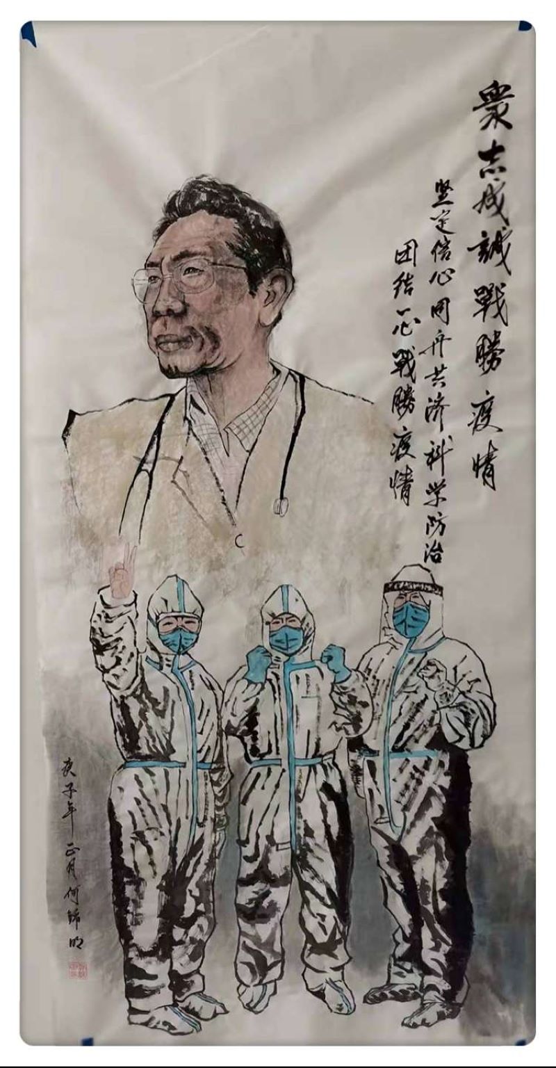 国画《众志成城 战胜疫情》作者:何锦明