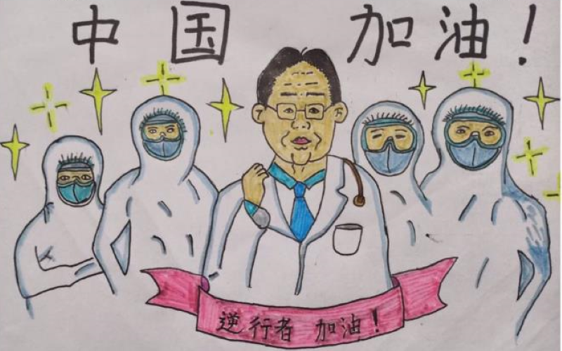 儿童画《中国加油》作者:刘德雅,12岁